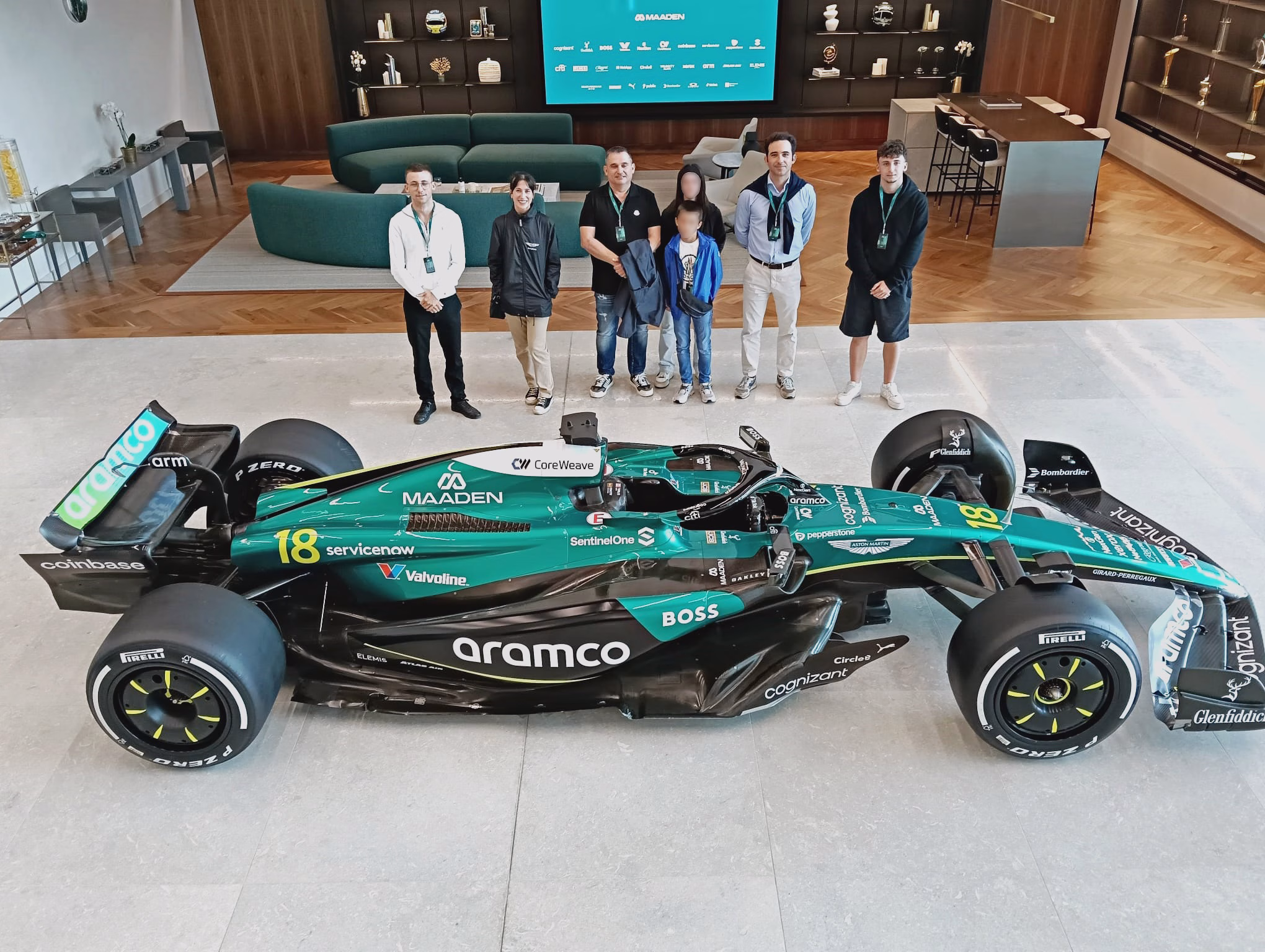 Visitamos las distintas áreas de producción, comprobando la velocidad y precisión con la que trabajan para tener todo listo antes de cada Gran Premio. Incluso, pudimos admirar un monoplaza casi terminado, que lucía el espectacular diseño verde lima característico de Aston Martin. Nos impresionó el ritmo frenético de las operaciones, y los guías compartieron curiosidades de la F1, como historias del equipo Aston Martin Aramco y anécdotas sobre sus pilotos.