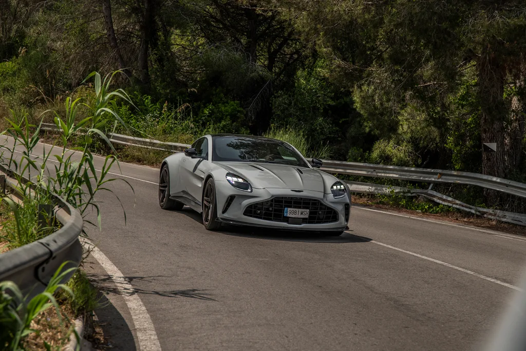 Nuestros clientes, acompañados en todo momento por drivers profesionales, se embarcaron en una ruta diseñada para revelar los matices de cada modelo. Salimos del hotel, para dirigirnos a una corta pero revirada carretera de montaña, donde cada horquilla puso a prueba la agilidad del DBX707 y la estabilidad quirúrgica del Vantage. Los invitados pudieron experimentar en primera persona cómo el SUV británico combina su porte imponente con un chasis afinado al milímetro, convirtiendo carreteras reviradas en un parque de diversiones de pura precisión. A bordo del Vantage, cada acelerón generaba un estremecimiento de emoción: la melodía del motor, potenciada por un escape deportivo, resonaba en el habitáculo como un invitación a explorar los límites de la velocidad con total seguridad.