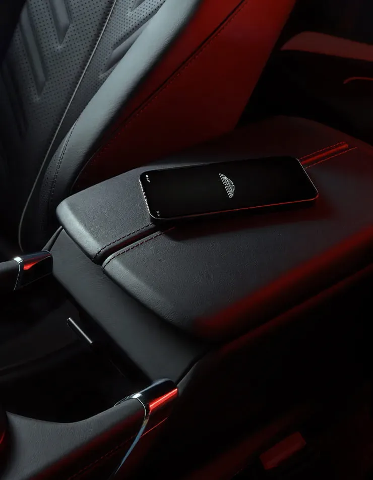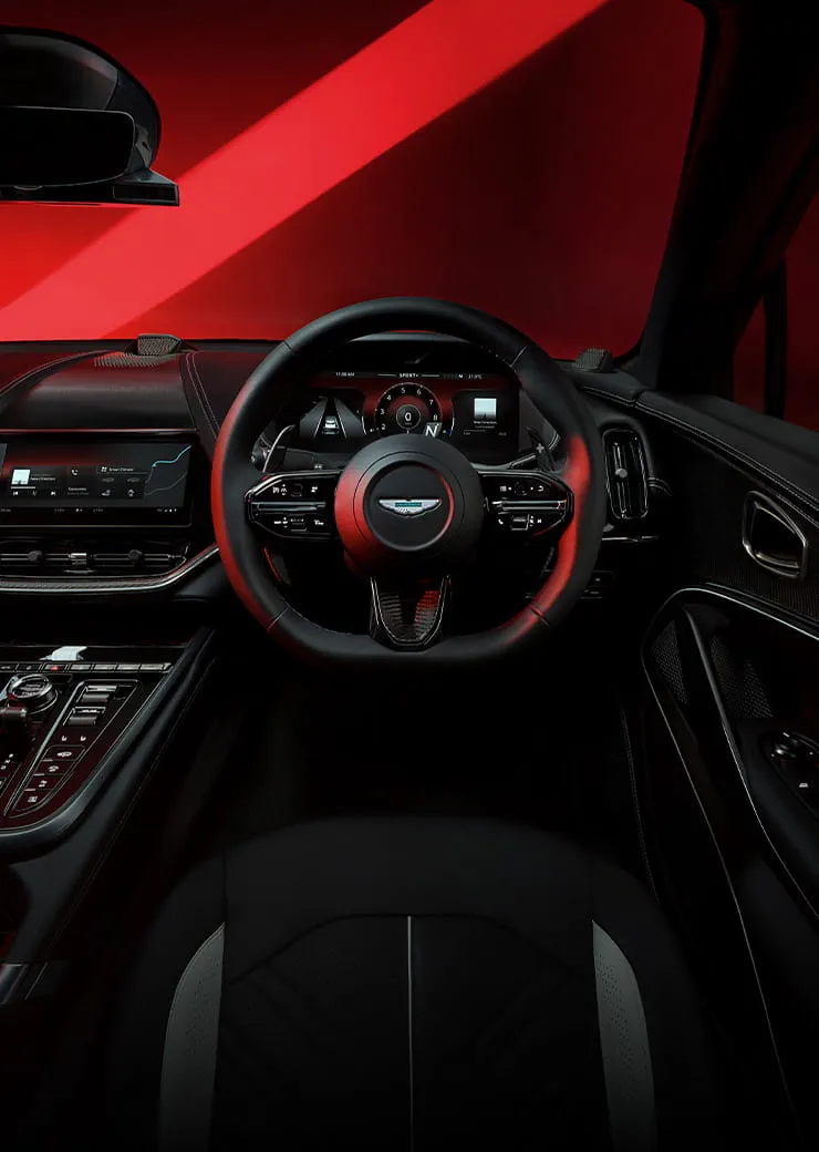 The DBX S cabin is crafted with complete control. Ergonomically designed. Simplicity and seamlessness as one. Turbocharged by wireless charging. Kindled with the new universal intelligence of the Aston Martin app.