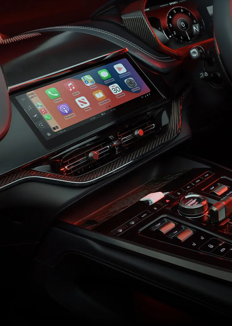 DBX S offers the premiere of touchscreens with Pure Black technology. Offering class-leading clarity with its highest definition display. 1,920 x 720 pixels. Instantly enabling fingertip and multitouch control with a blend of touchscreen menus and short keys. Actioning your personal touch in 30 milliseconds.