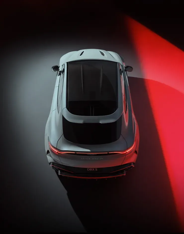 New side sills with up-turned winglet profiles help channel air along the side of the car whilst adding further presence to the DBX S profile. The iconic side strake is woven into a new visual language signed off with the unique solid metal S badge. Self-presenting door handles power outwards when the SUV is unlocked. Flush-glass swivel-head door mirrors further finesse both flanks without impacting aesthetics. Attached to the mirror design are fully integrated cameras to support a 3D camera system that offers infinitely viewable 3D modelling of the SUV with associated views.