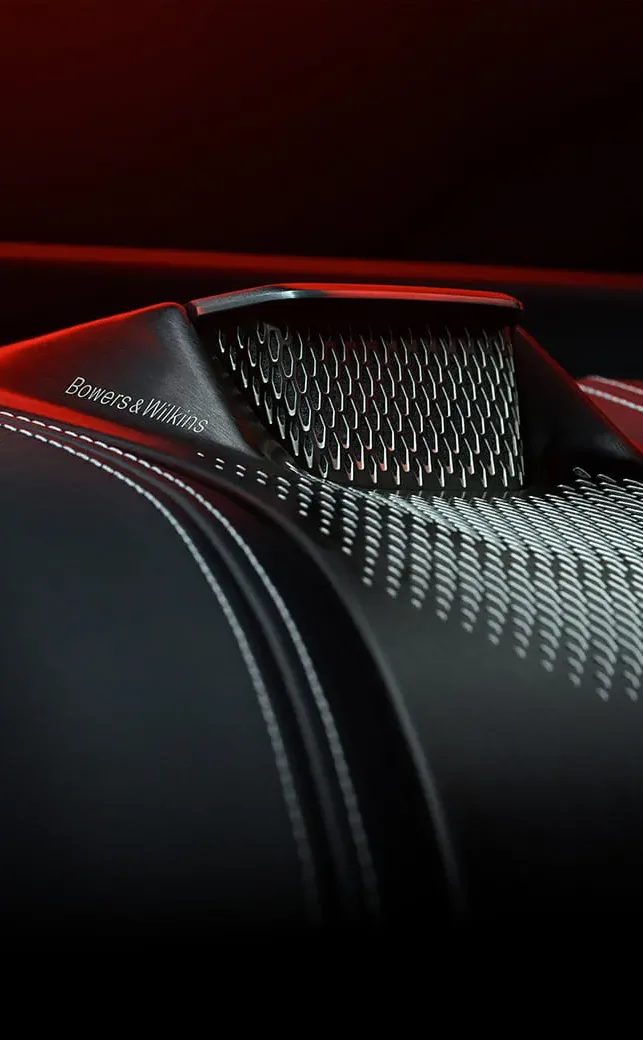 DBX S continues the showcasing of Aston Martin’s state-of-the-art in-house developed infotainment system within a striking new cabin architecture. Bespoke engineered for DBX comes Aston Martin’s largest and most powerful Surround Sound Audio System. Technologies found in the high-performance loudspeakers such as Aluminium Double Dome tweeters and Continuum™ midrange speakers give this 23-speaker, 1,600W surround sound system a balance of perfect precision sound. Accurately positioned directional tweeters, headliner speakers and a powerful ported subwoofer ensure the pinnacle sound experience yet to be achieved in an Aston Martin. Made possible through Bowers & Wilkins delivering state-of-the-art recording studio speaker technology directly to the DBX.