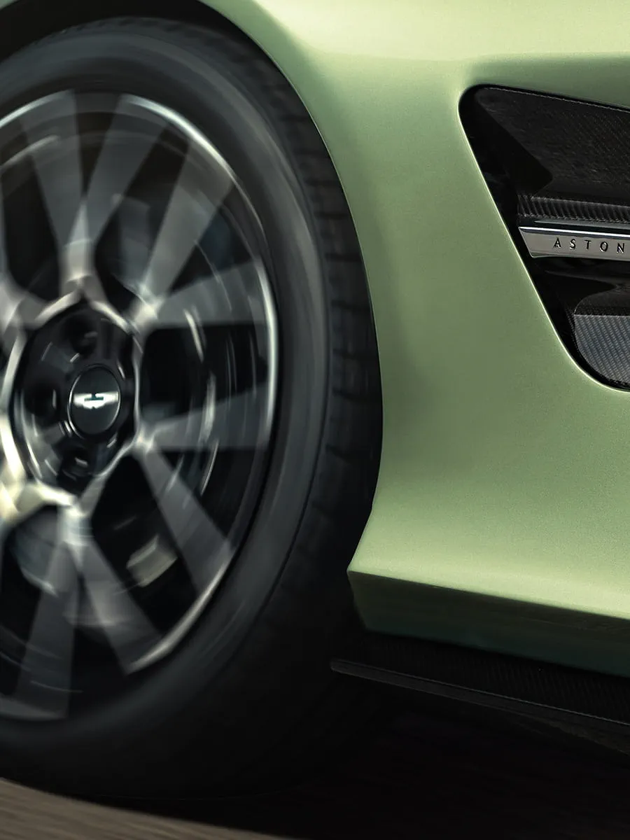Vanquish Volante features Matrix LED headlights* with a six-block design pattern specifically created to reduce light refraction. Intricately designed and textured. Engraved with the Aston Martin name for an elegant finishing touch. Framing the shield at the rear, seven unique light blades emphasise the car’s width and offer a unique light signature. Specially modified from those of Valhalla, they also provide a characterful start-up light sequence, ensuring Vanquish Volante is as instantly recognisable at night as it is during the day.